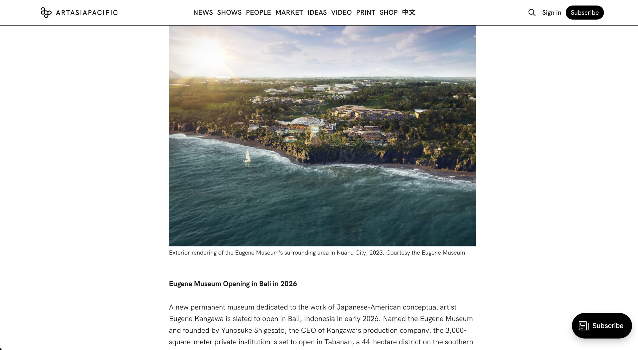 寒川裕人/ユージーン・スタジオの作品の常設美術館「ユージーン・ミュージアム・イン・バリ」が、Art Asia Pacific(香港、Web)に掲載されています