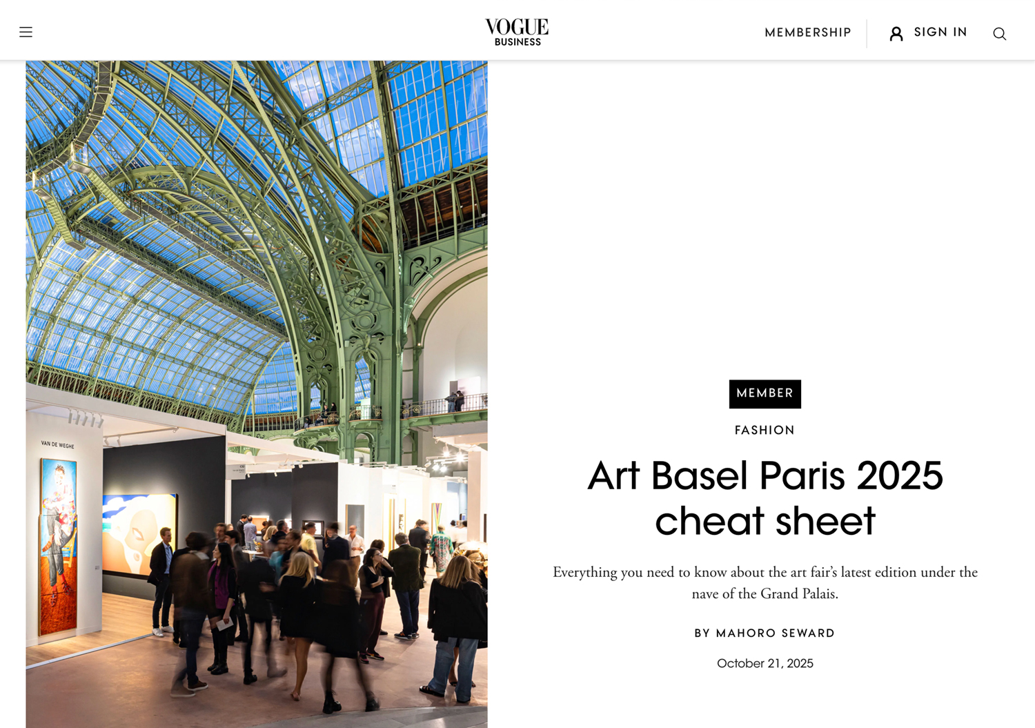 “VOGUE BUSINESS: Art Basel Paris 2025 cheat sheet: Everything you need to know about the art fair’s latest edition under the nave of the Grand Palais. ”