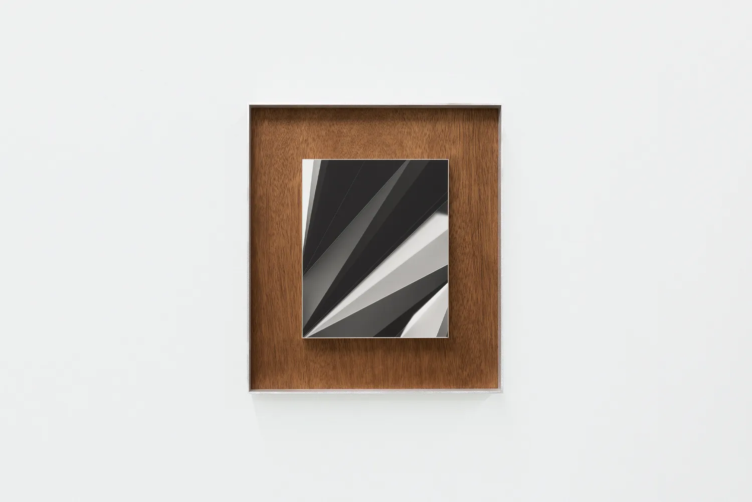 Setelah itu, saya memulai seri monokrom pada kertas foto yang awalnya digunakan untuk sketsa. Seri ini tidak dibuat dengan cat atau cetakan, melainkan melalui teknik fotografi fotogram, yang tidak memerlukan kamera maupun film. Sejak sebelum perang, seniman seperti Moholy-Nagy, Man Ray, dan Ei-Q telah menciptakan fotogram, sering kali dengan menggunakan motif seperti bunga, tangan, atau bola. Sebaliknya, seri ini berupaya bekerja hanya dengan dua elemen: kekuatan bawaan dari kertas itu sendiri dan kekuatan cahaya, tanpa menggunakan objek apa pun.