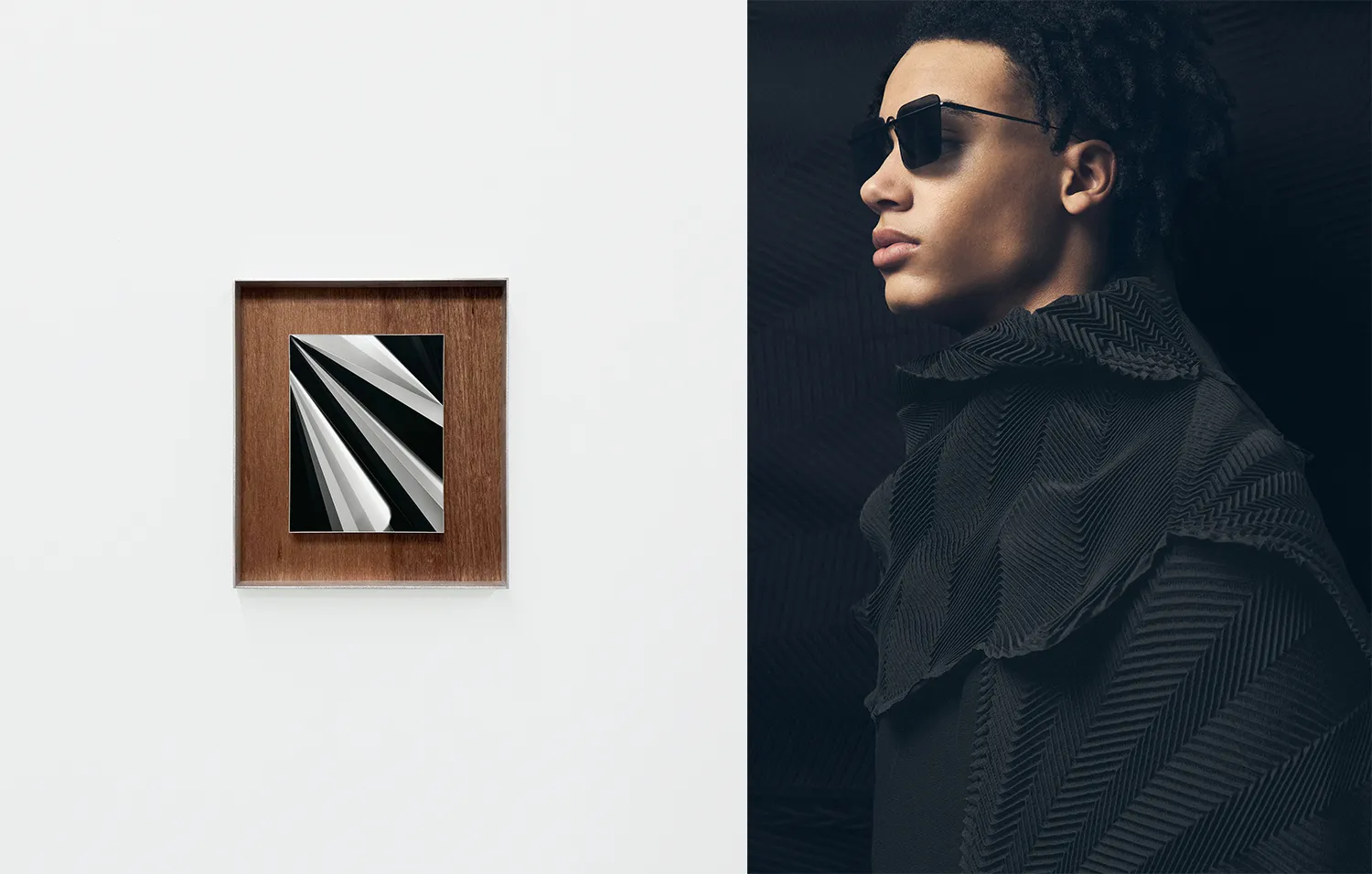 Left: © ISSEY MIYAKE INC. Right: Light and shadow inside me (untitled), 2024, gelatin silver print (photogram). Eugene Atelier iii, Private Collection