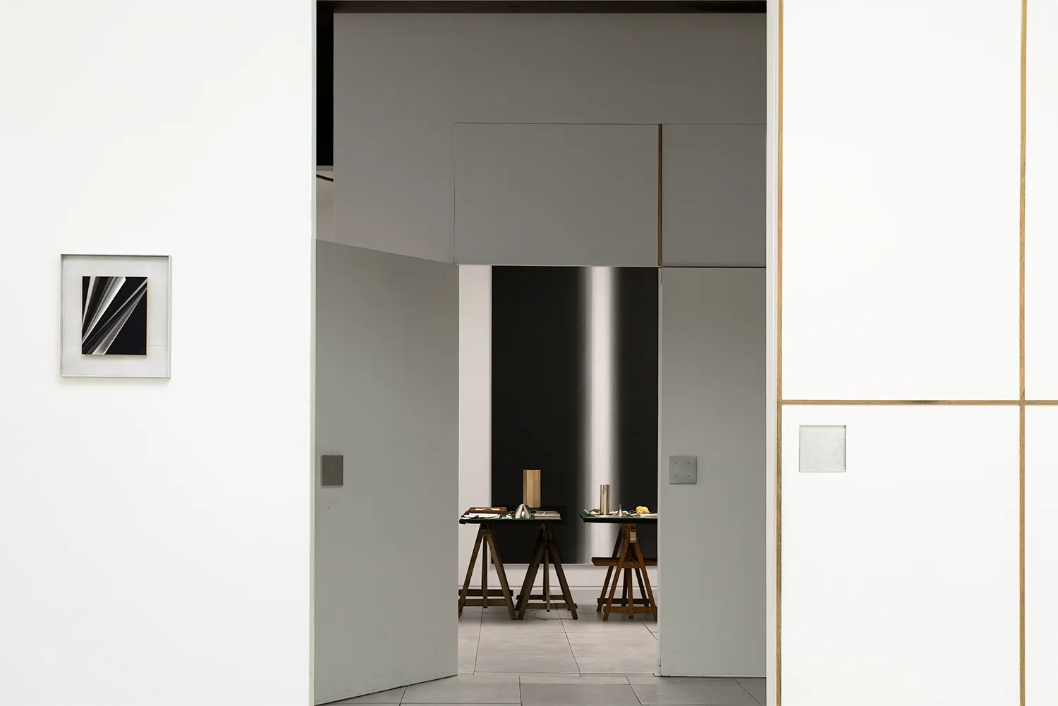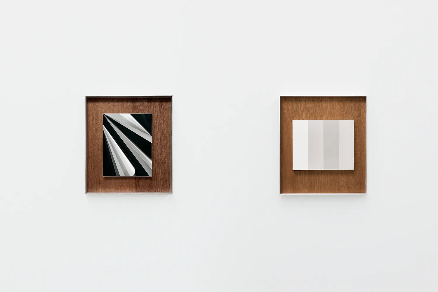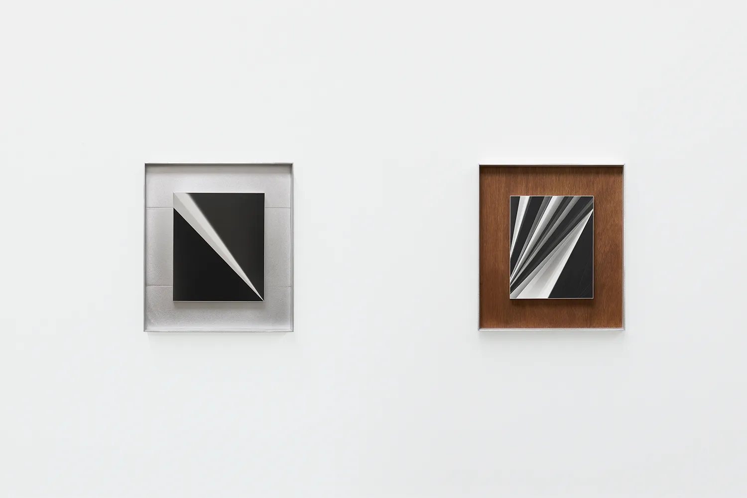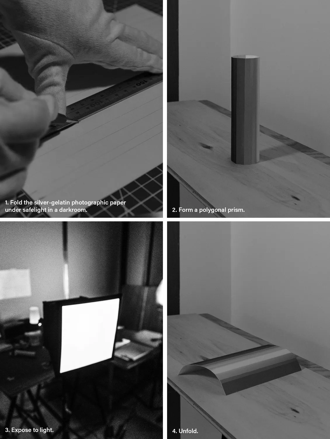 The subsequent black-and-white works were created by folding a single sheet of photographic paper into a three-dimensional form in a darkroom, then exposing it to light from a single source. This photogram became the conceptual starting point for this project.