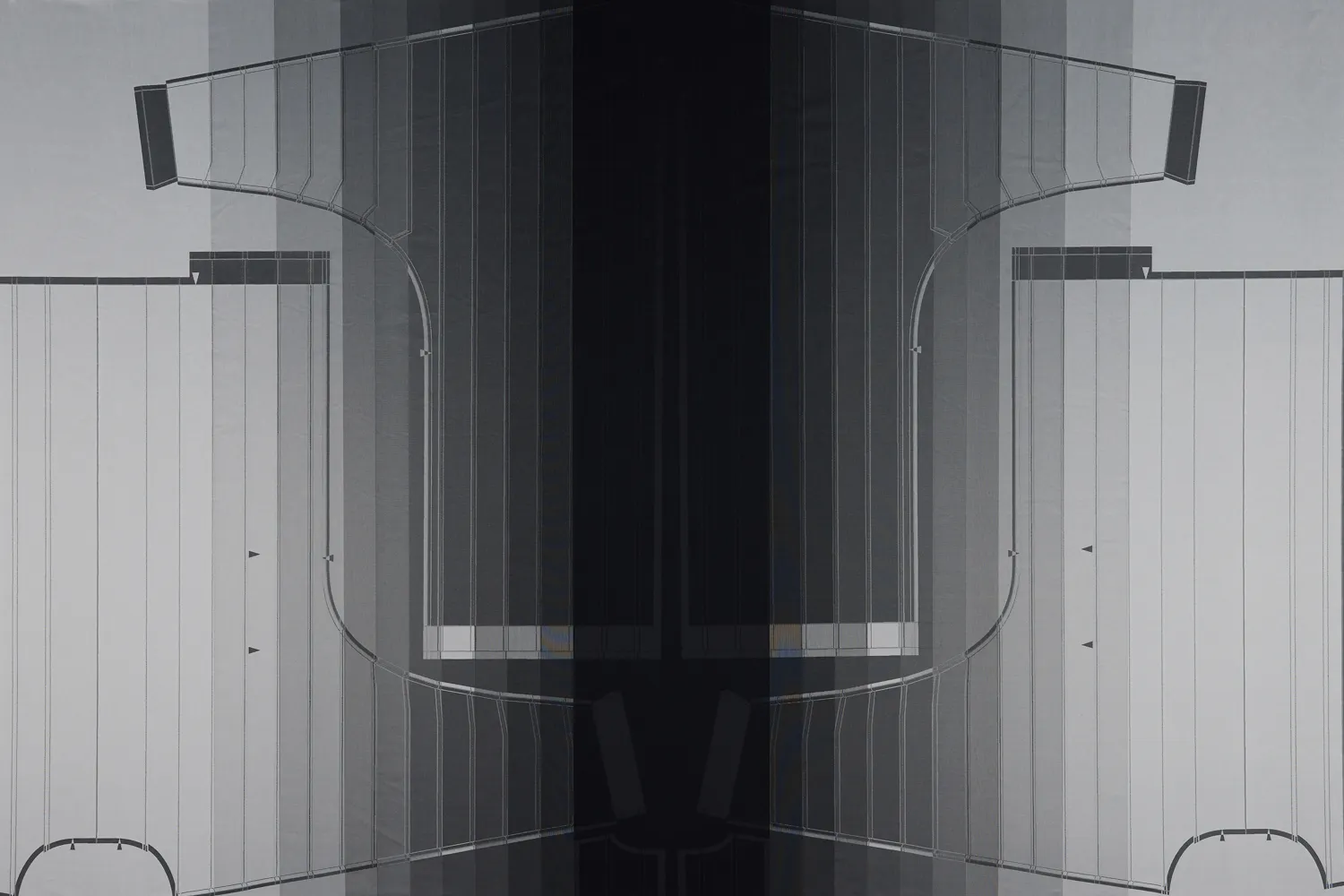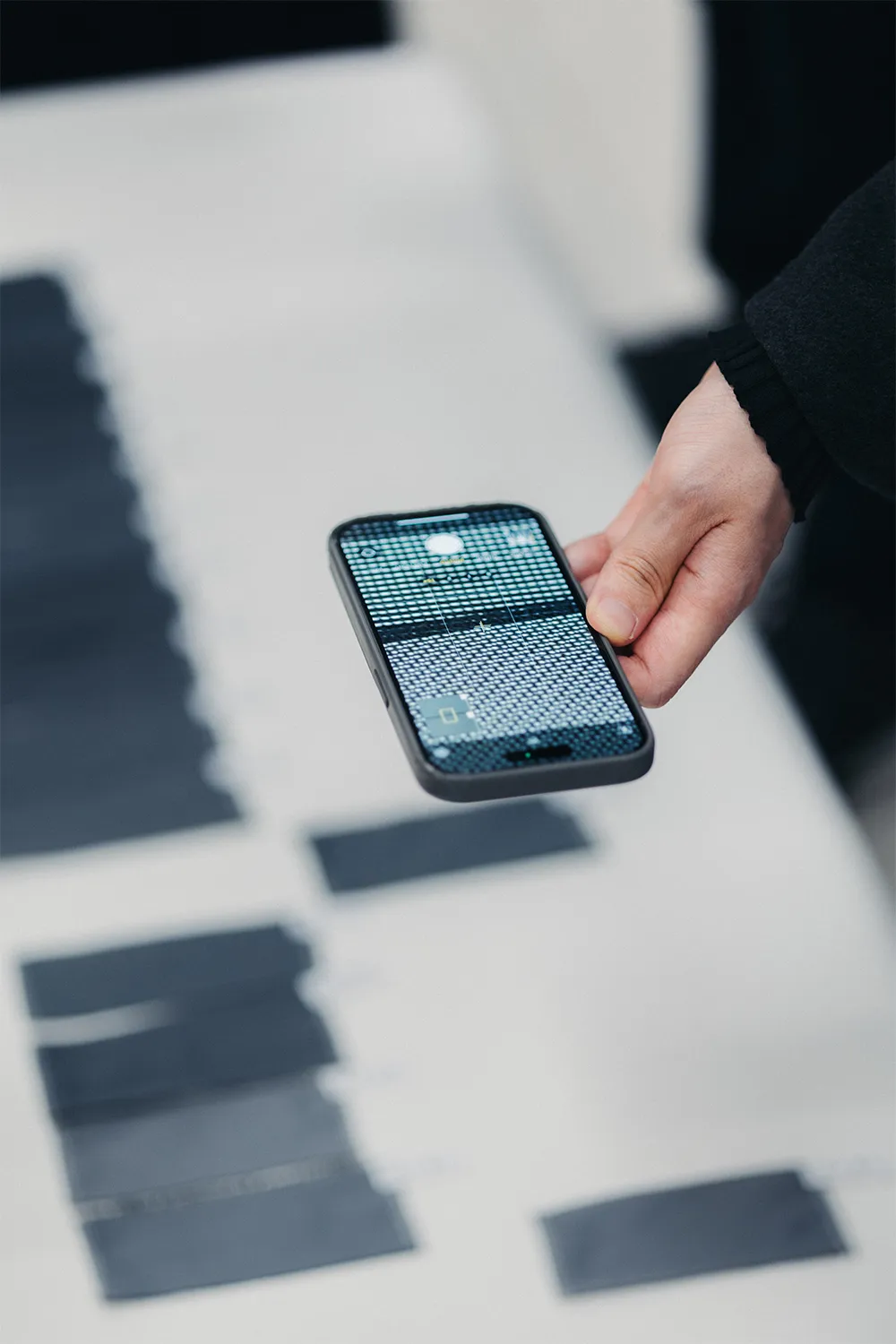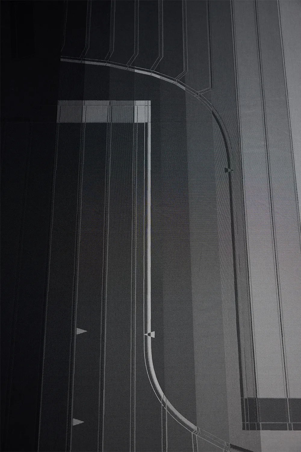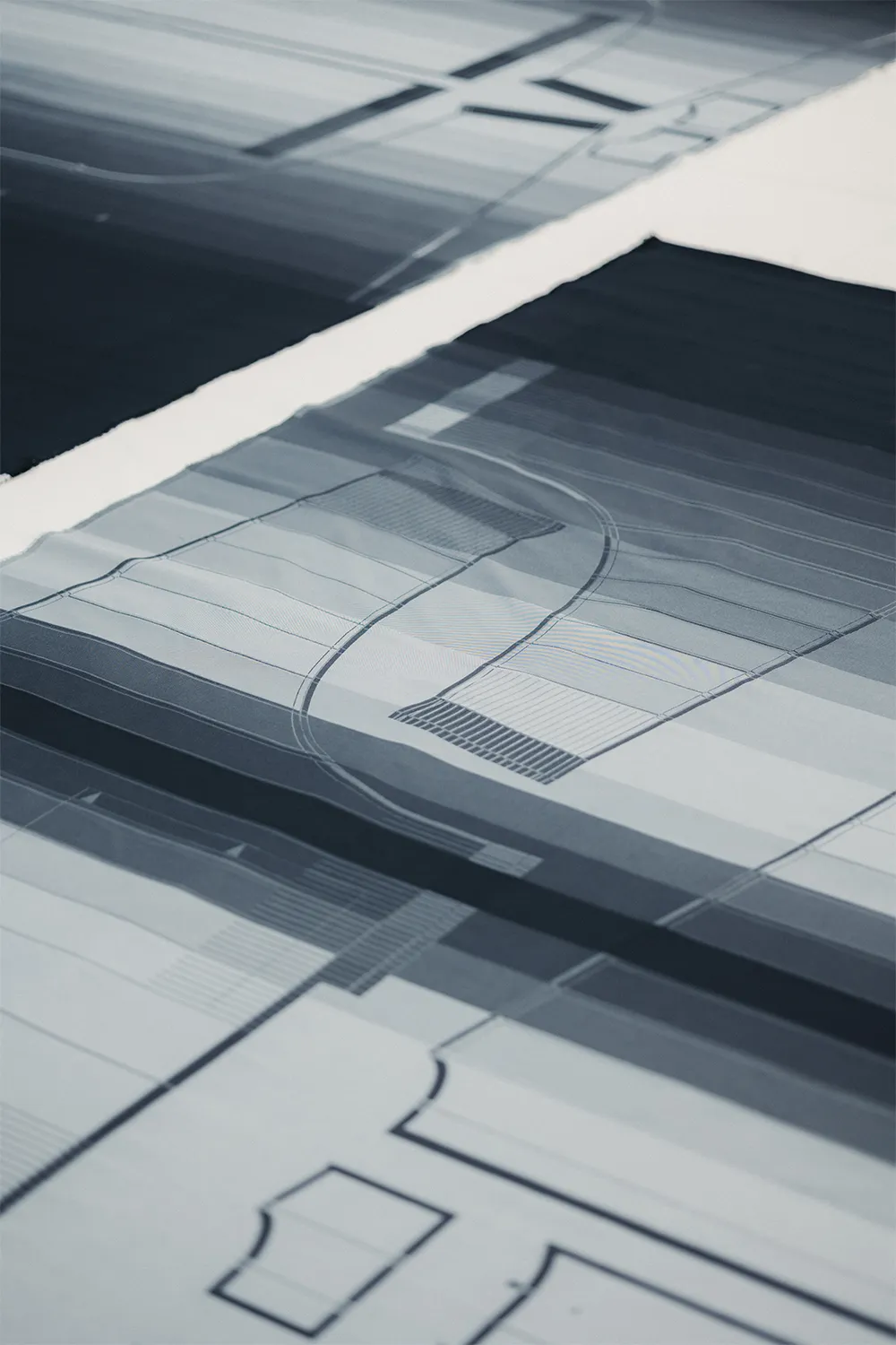 In this project, A-POC ABLE ISSEY MIYAKE further evolves this process by returning to the essence of a piece of cloth. Focusing on the relationship between warp and weft—the fundamental elements of woven textiles—the team creates gradations not through dyes or pigments, but by varying the density of the weave using only two thread colors: black and white. This pursuit of complex expression through simple elements conceptually overlaps light-sensitive silver halide grains with the threads of woven material, resulting in a unique textile that can be described as “fabric at the bit level.”