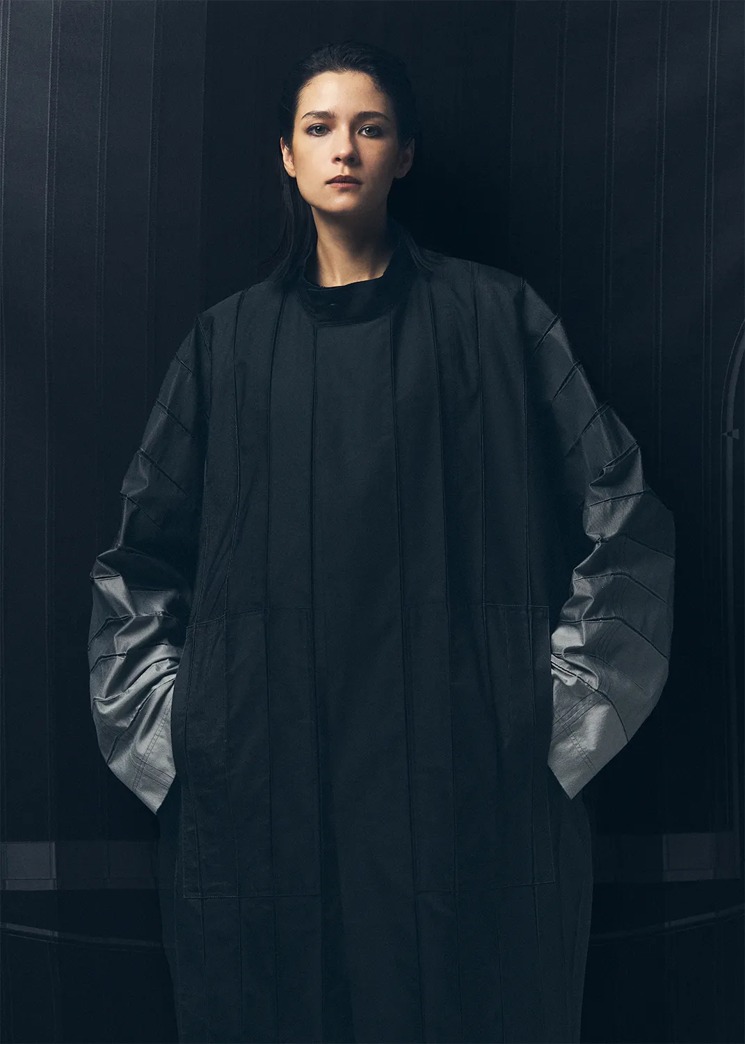 A-POC ABLE ISSEY MIYAKE has consistently returned to the essence of materials and structure, exploring new possibilities in clothing. For this project, inspired by Mr. Kangawa’s reflections, we returned to the smallest unit of fabric: a single thread. Using only black and white threads, we explore light and shadow through variations in weave patterns and density, translating the phenomena of photographic paper and light into the language of cloth.