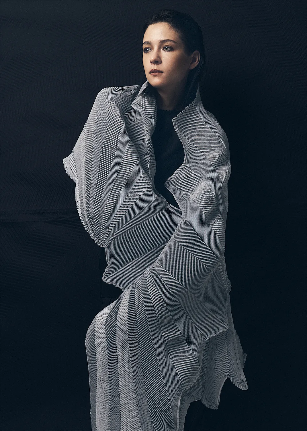 This project began about three years ago. I was deeply impressed by everything the A-POC ABLE team accomplished—from expanding the very essence of my work, to creating textiles from scratch, experimenting as if weaving a new language, and ultimately arriving at these remarkable garments.