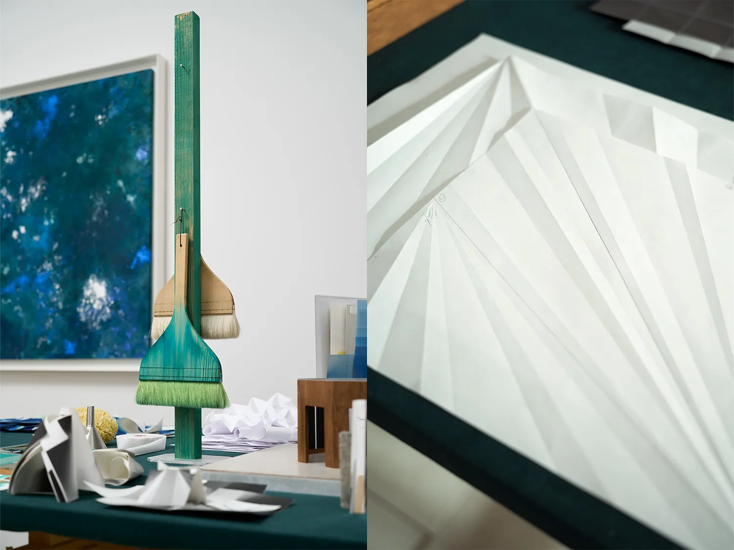 Light and shadow inside me began with green paintings born from the fading of sunlight. A single-colored sheet—brushed, folded, and entrusted to the sun. A work that begins and ends as a painting, it is the fruit of nearly five years of patient, repeated experimentation to reach its present form.