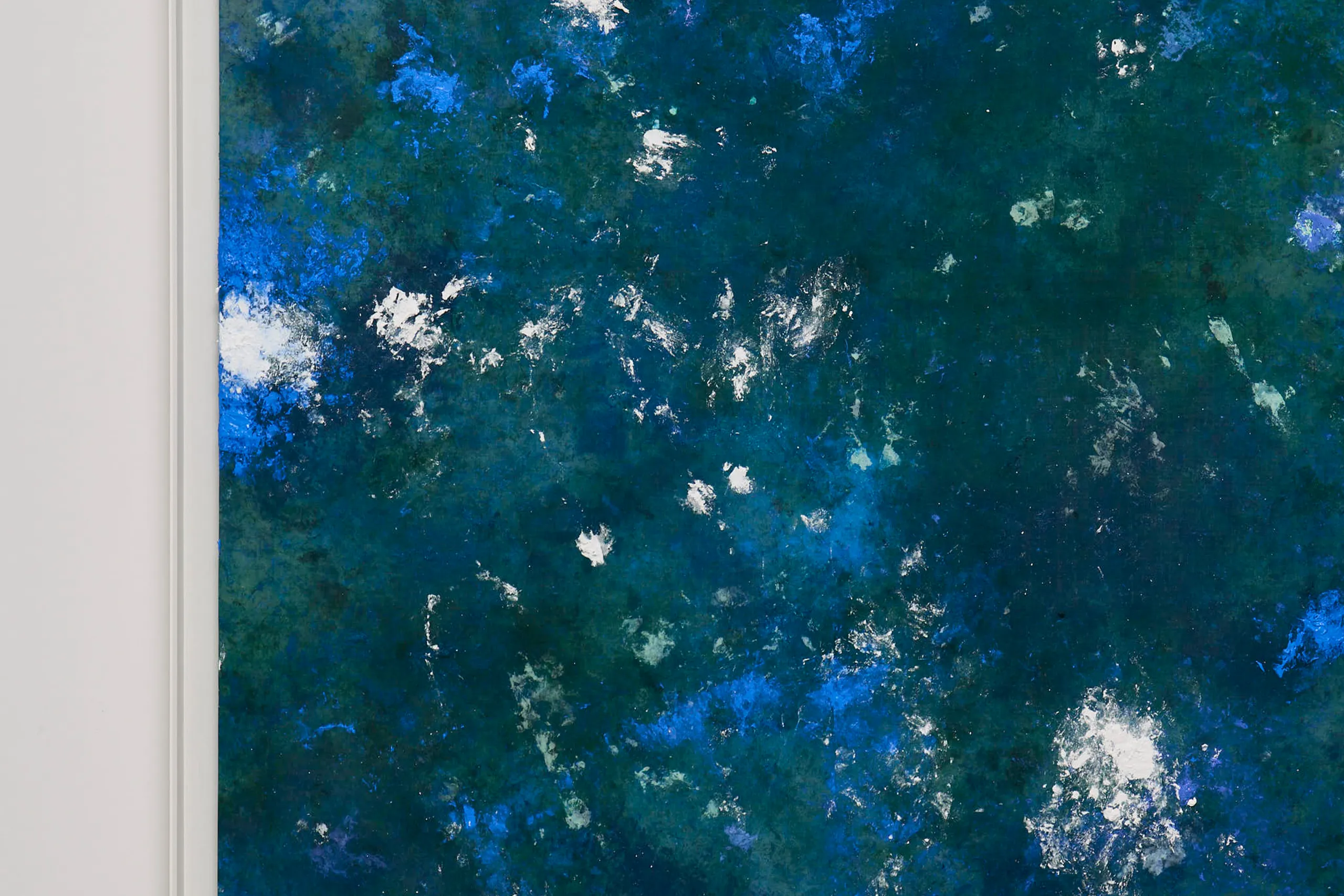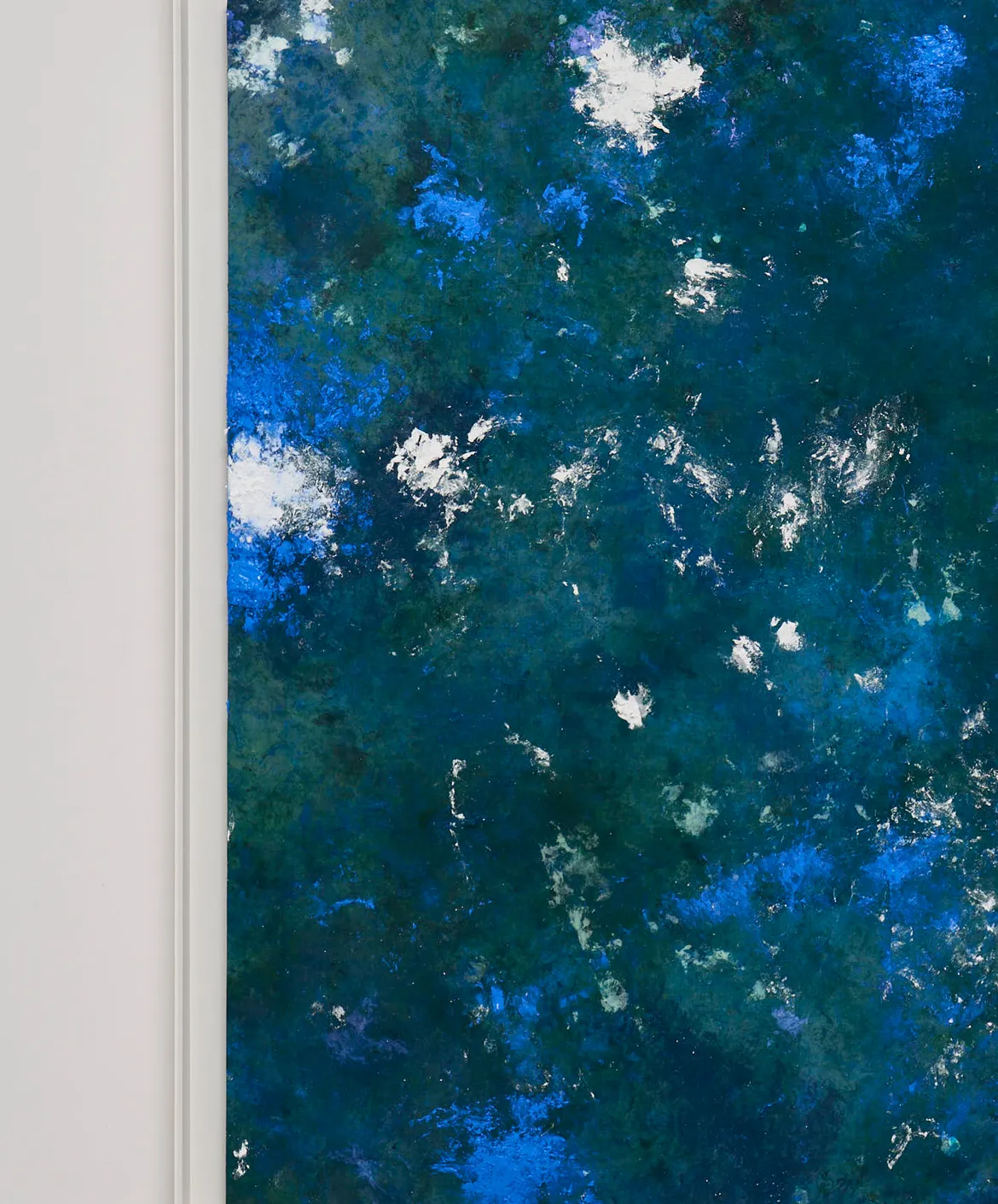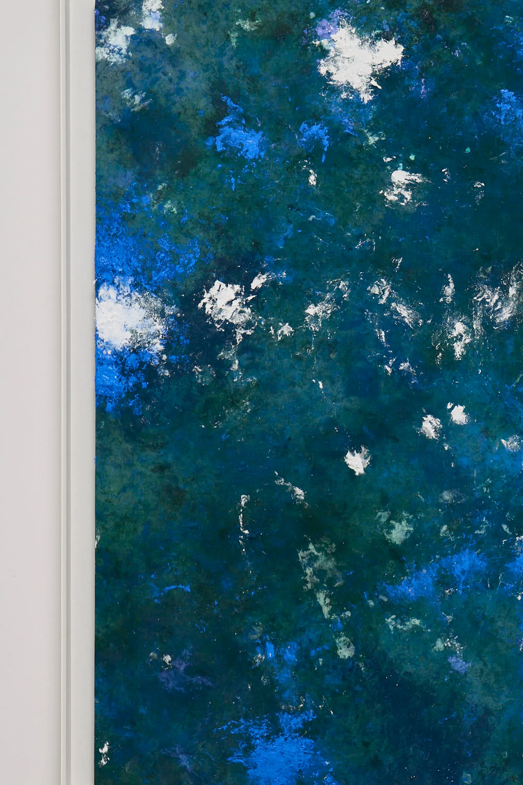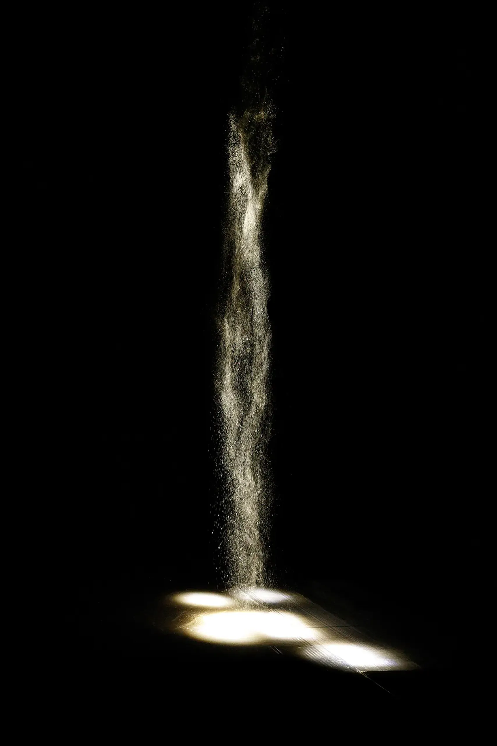 This series comprises two types: greenish-blue works made by folding a single sheet of coated watercolor paper into a polyhedral form, exposing it to sunlight, then unfolding it; and black-and-white photograms made in the same way on silver-gelatin photographic paper, exposed to a single light source. In the artist’s large, self-built darkroom, single sheets of photographic paper are hand-scored with straight fold lines—for example, up to 3m long—and folded into 48-sided forms before exposure. Using this method—capturing “only the light and shadow inherent to the object itself”—the gradations of light and shadow are fixed onto the paper…